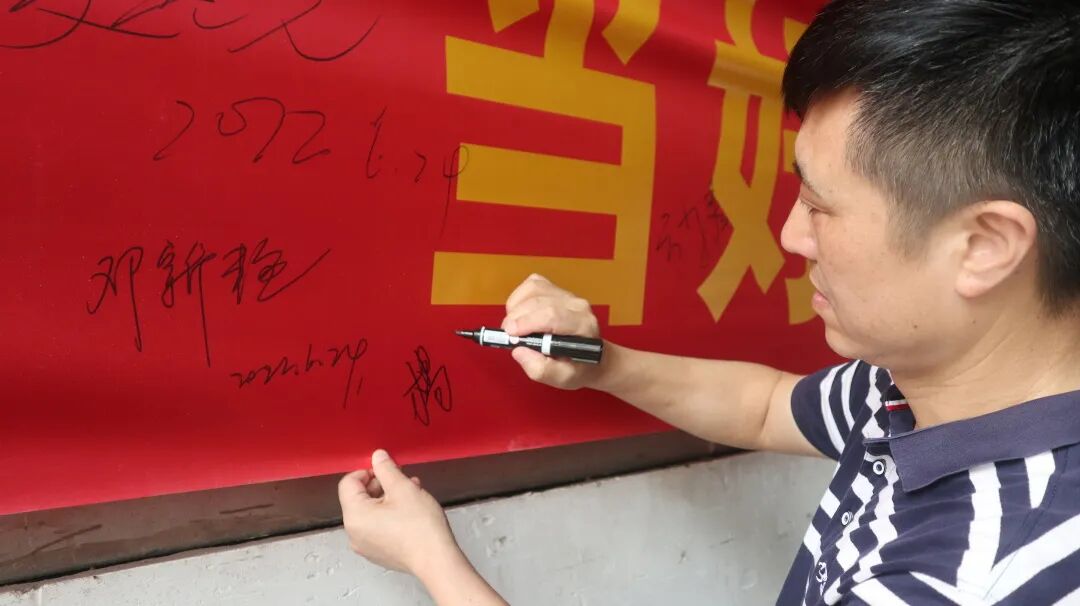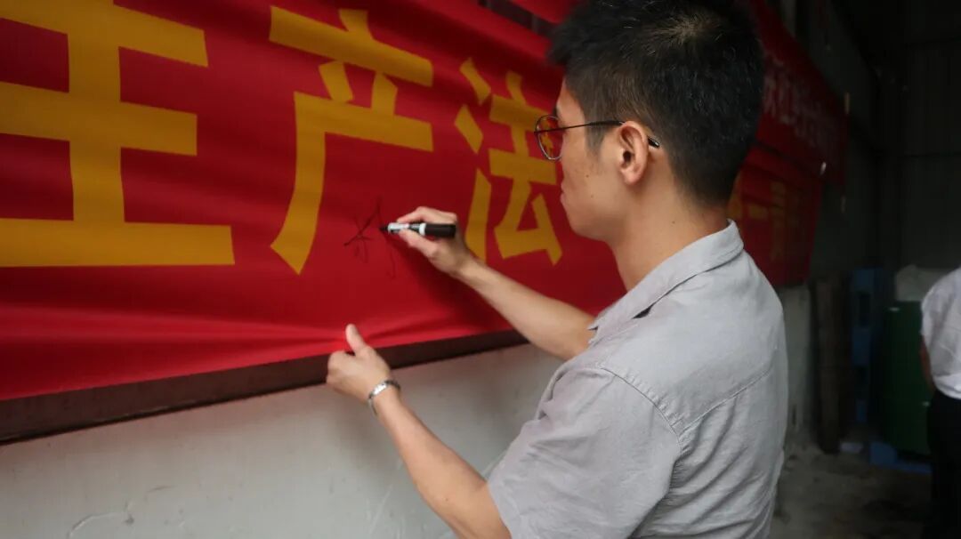 臺杰食品利用懸掛條幅方式進行安全月主題宣傳,培訓完成后,由我們公司總經理、副總經理及各部門負責人帶頭簽名承諾。